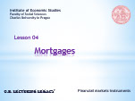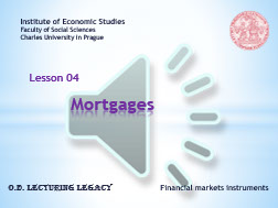 Level-payment mortgage (annuity formula, decomposition of the regular instalment, payment calendar). Prepayments. Traditional mortgage and inflation (tilt effect, affordability problem). Graduated-payment mortgage. Foreign-currency mortgage. Securitization with mortgages (agency deals, private-label deals, sequential and subordination pay structures).