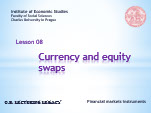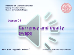 Exchange rate conventions. Discounts and premiums. Covered interest parity. Outright forward. Forward swap. Currency coupon swap (hedged borrowing, hedged investment, new-issues arbitrage, warehousing). Valuation of currency swaps. Equity swap (fixed and variable notional principal amount). Swaption.