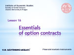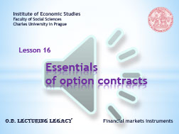 Asymmetric buyer-seller relationship. Call and put options. European and American options. Ice-hockey diagrams. Payoff formulas. Intrinsic and time values. Short-term payoff profiles. Regularities among option premiums. Types of option contracts. Types of financial options. Equity options (a levered firm with limited liability). Stock index options. Currency options (equivalence of call and put, experimental use in monetary policy). Options on futures.