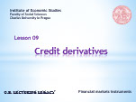 Basic properties and benefits. Credit default swap (description, applications, pricing, analogy with insurance). Total return swap (description, applications, analogy with leasing). Credit options (credit level and credit spread call and put options). Credit forward. Credit link notes (descriptions, examples). Collateralized debt obligations.