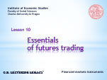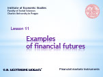 Broad categories of financial futures. Stock index futures (closing out, cash settlement). Currency futures (closing out, physical delivery). Short-term interest rate futures (closing out, cash settlement, physical delivery). Long-term interest rate futures (closing out, physical delivery, price factor, cost-of-carry transaction, choosing delivery date, cheapest to deliver bond, implied repo rate).