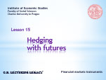 Methods of hedging (price-fixing hedge, offsetting hedge). Synthetic price-fixing hedge. Price-fixing hedge with estimated basis. Price-fixing hedge with notional futures. Elements of offsetting hedge (hedge ratio, hedge efficiency). Minimum variance hedge ratio. Hedging stock portfolio. Hedging interest rate risk. Hedging bond portfolio.
