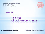 Binomial model (binomial tree, delta-neutral covered call, general formula, example). Black- Scholes formula on a non-dividend-paying stock (variables, example). Historical and implied volatility. Monte Carlo simulation. Extensions of B-S formula (European put on a non-dividend-paying stock, American call and put on a non-dividend-paying stock, European call on a dividend-paying stock, American put on a dividend-paying stock). Volatility smile. Volatility term structure. Put-call parity (derivation, examples).